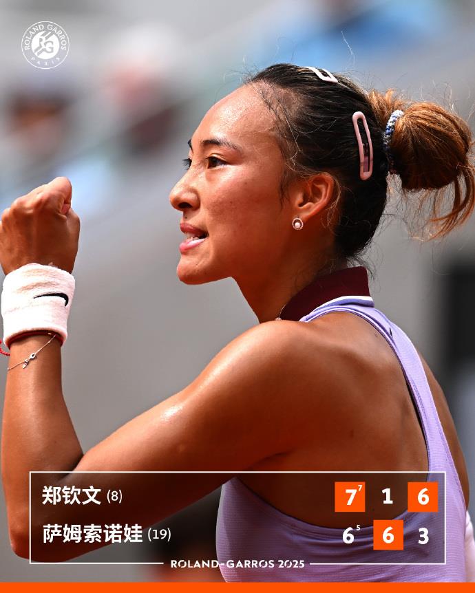 在另外一场1/8决赛中,头号种子萨巴伦卡把握住第八个赛点以7-5、6-3击败16号种子阿尼西莫娃,连续三年跻身法网八强。这意味着,郑钦文将在1/4决赛中再次对阵萨巴伦卡。