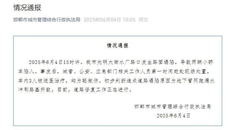 4日,邯郸市城市管理综合行政执法局发布情况通报: