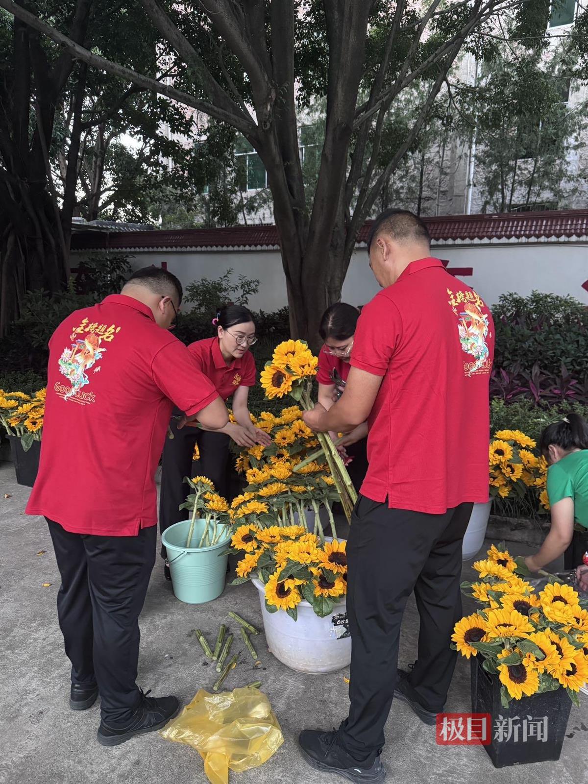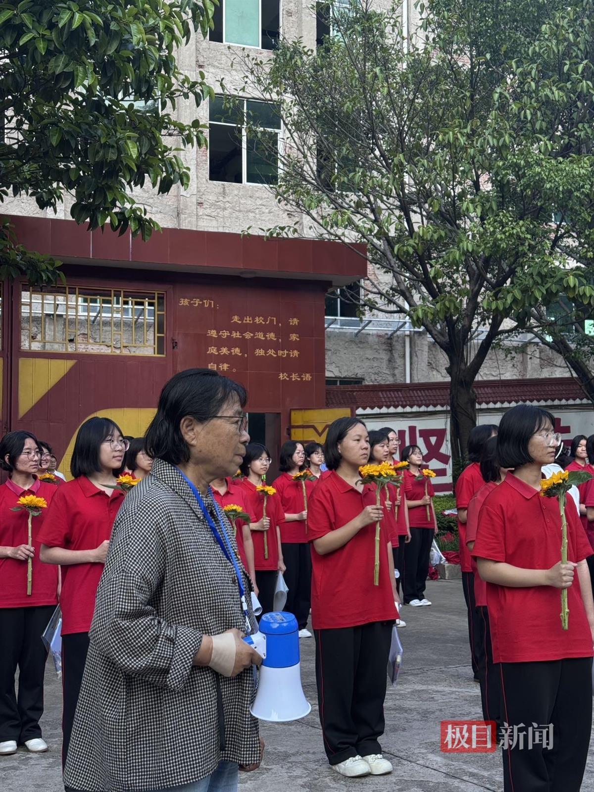 向日葵寓意“一举夺魁”,今天老师们也穿上了印有“金榜题名”的校服;有学生晕车,张桂梅赶紧联系用摩托车送考。