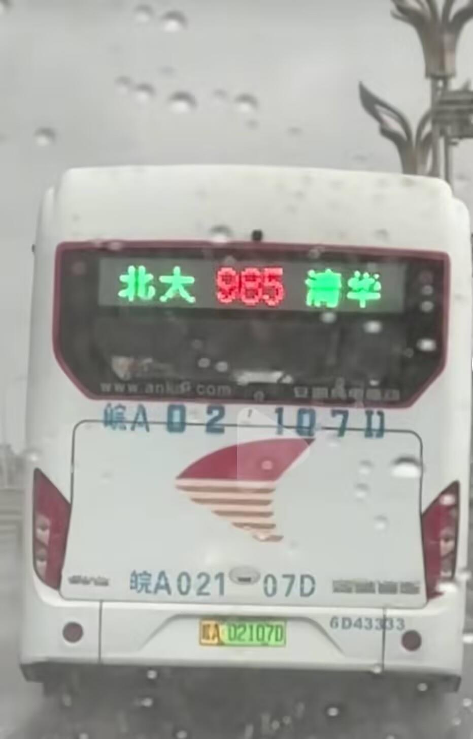 6月7日,合肥网友发现,路上出现了多辆公交车985路公交车,在显示屏上还表明到达的站点是清华、北大。