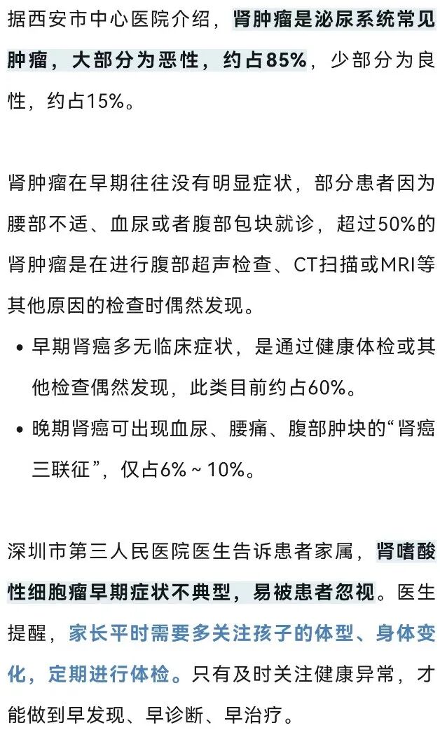 等到了当地医院一检查,CT结果显示,她的右肾有恶性肿瘤伴肝转移可能,家长就立即带着孩子来到深圳求医。