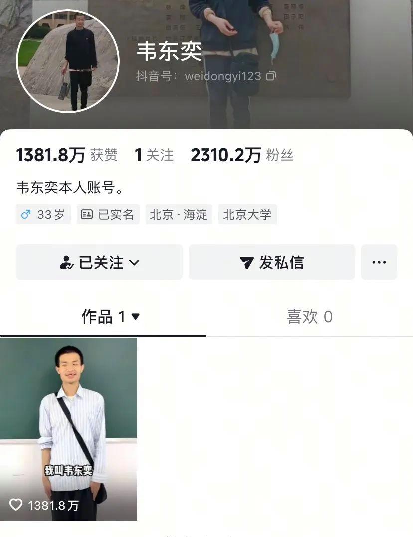 截至6月9日10时30分许,韦东奕账号粉丝已突破2310万。