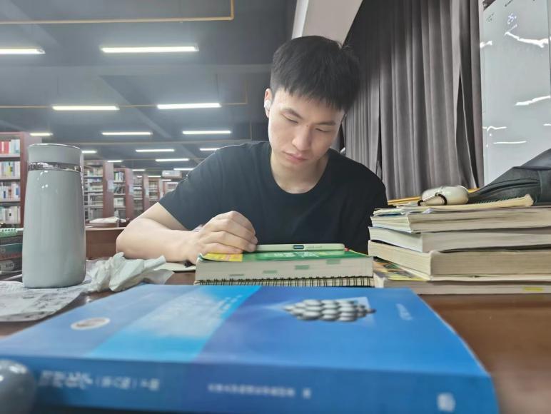 备考征途上,数学是最大的拦路虎。“大学数学跟高中数学完全不是一个层次,得下真功夫。” 为了攻克它,成壮祭出了最朴实的武器——题海战术。四年间,他刷过的习题资料层层堆叠,竟累积出惊人的一米高度。 提及此,他表示:“刷题不是为了数量,更不是刷KPI。重要的是通过题目吃透知识点,锻炼解题思维和综合能力。” 他拒绝盲目,讲究方法:状态好就多刷点,状态差就回顾基础;遇到瓶颈,积极拆解难题,回归知识点本源,主动找老师请教。“难题往往是几个知识点的组合,基础牢了,思路就通了。” 临近考试,他的数学模拟成绩已实现质的飞跃。