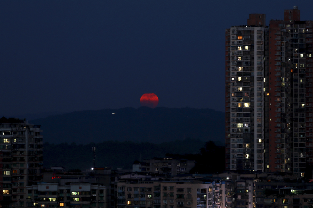 6月11日在四川省泸州市拍摄到的满月。新华社发(廖胜春摄)