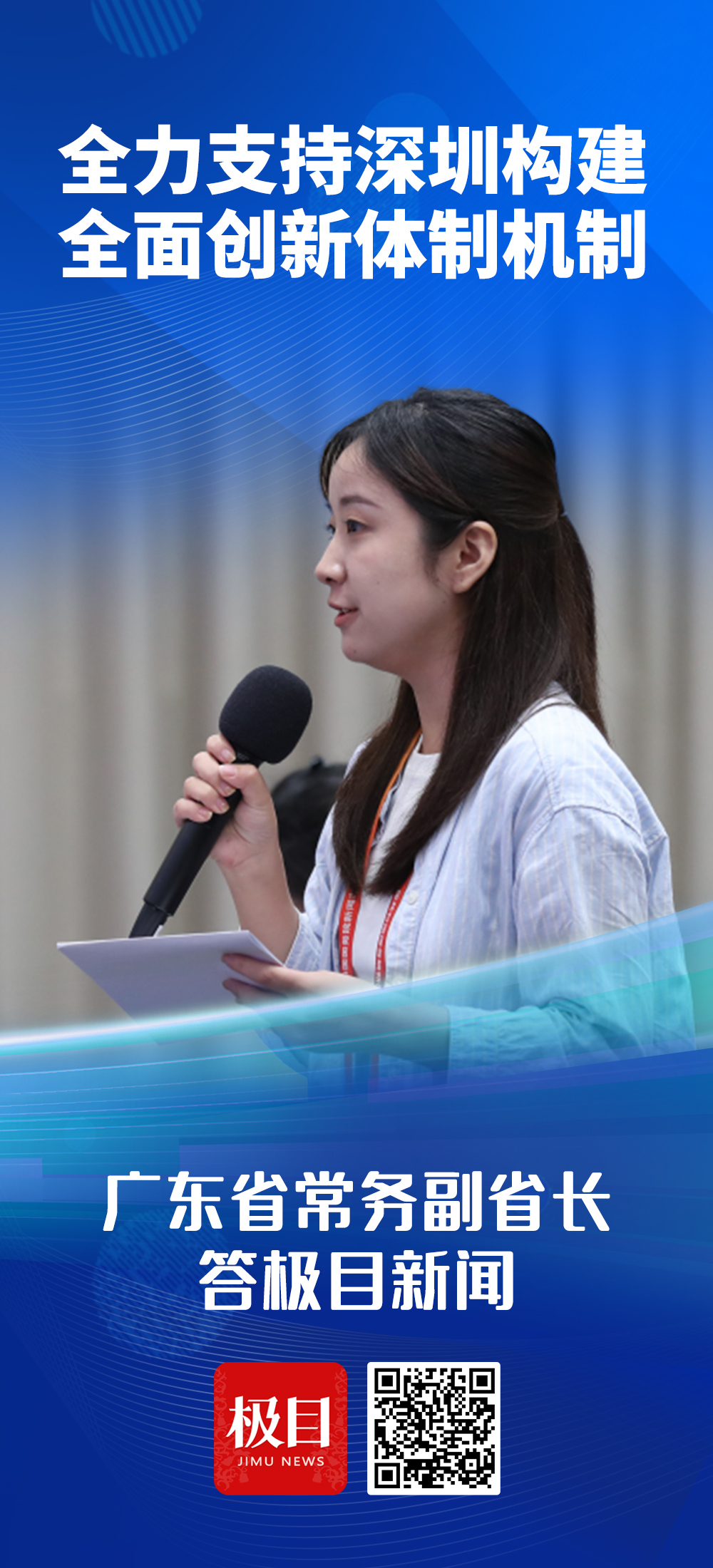 会上,极目新闻记者提问,深圳是创新之城,科技创新是深圳高质量发展的关键核心,未来广东在支持深圳进一步深化科技体制改革、推进经济高质量发展方面有何打算考虑?