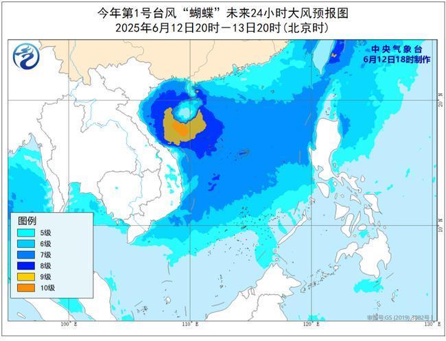 大风预报:6月12日20时至13日20时,南海大部、北部湾、琼州海峡、西沙群岛、南沙群岛、中沙群岛、广东沿海、海南岛沿海、广西沿海将有6~8级风,阵风9~10级,台风中心经过的附近海域风力可达9~10级,阵风11~13级。