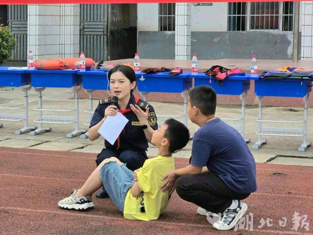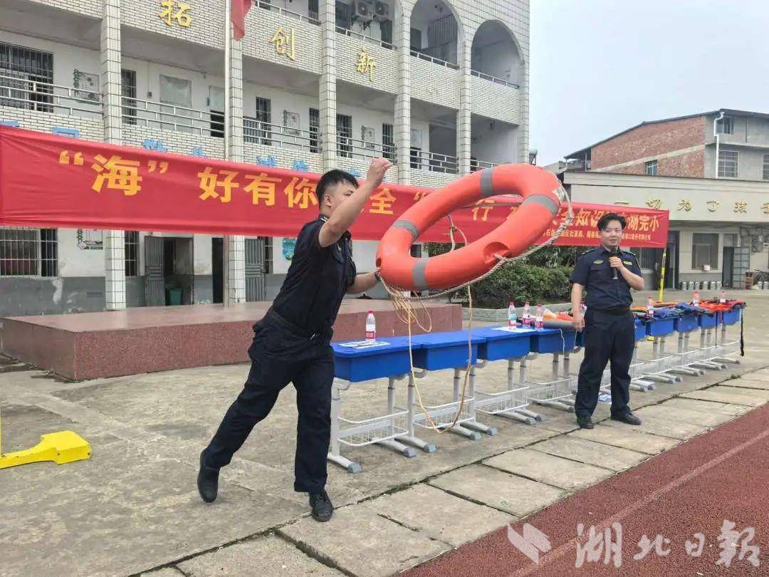 海事宣讲员通过案例讲解、互动演示、救生设备体验等形式,向学生普及防溺水知识、乘船注意事项、落水自救和互救方法,现场演示救生衣正确穿戴、救生圈使用方法等应急技能。