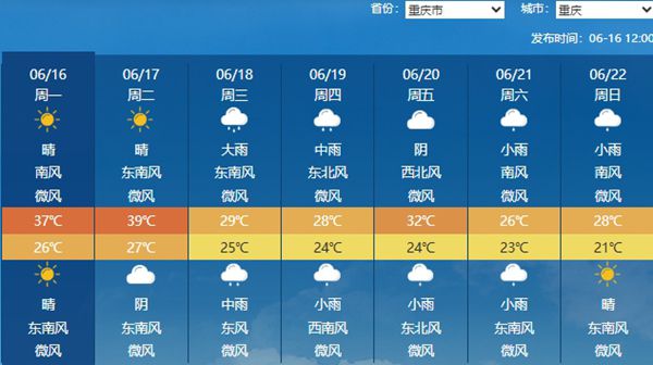 对四川盆地而言,今年热得可谓轰轰烈烈,高温日数比常年同期明显偏多。例如成都,常年整个6月高温寥寥无几,而今年6月10日以来已出现6天高温,且明天仍可能有高温天气,远超常年同期。与此同时,四川盆地部分地区的热力还会继续提升,像重庆,明天的最高气温或高达39℃,将迎今年来气温新高。