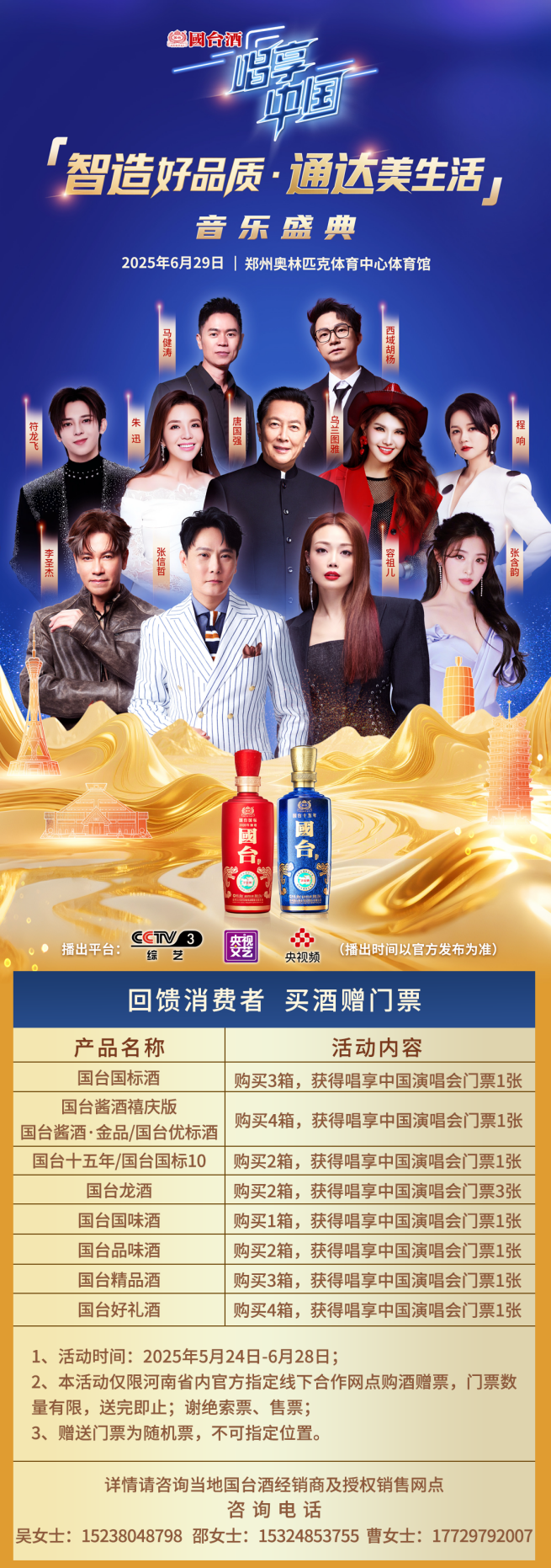 智造好品质、通达美生活,6月29日,郑州奥林匹克体育中心体育馆,与国台酒一起,享受美酒与音乐。