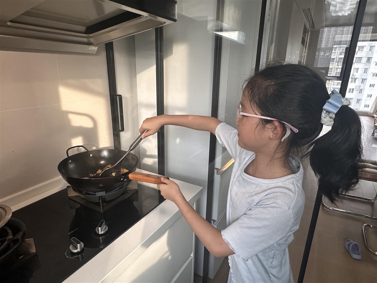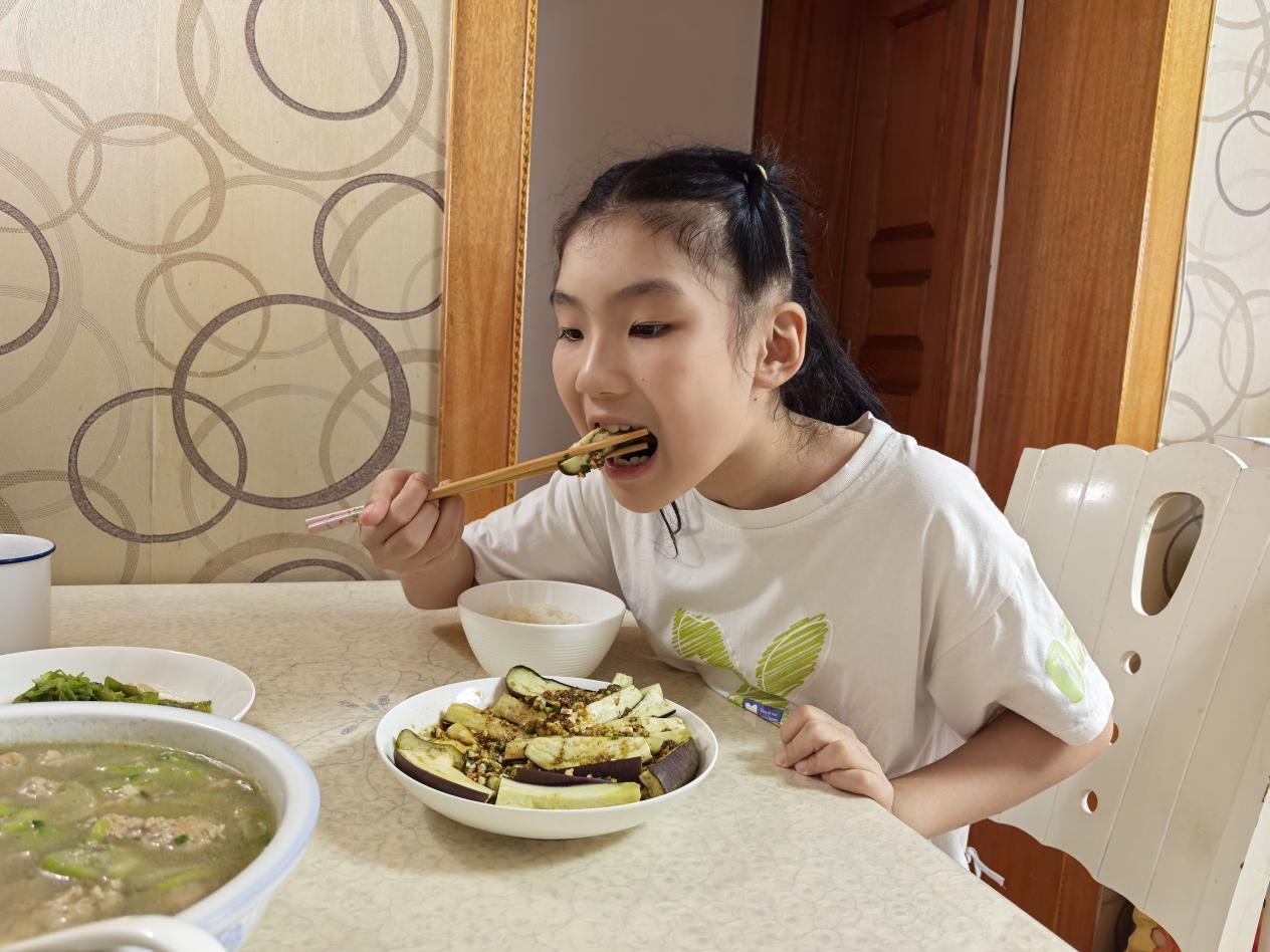 文姝怿同学抱着满满一篮黄瓜,兴奋地说:“我喜欢吃黄瓜,我最会做黄瓜炒鸡蛋!”采摘结束后,每位同学都分到了一些劳动果实,高兴地带回家,晚上亲自下厨和家人分享自己的劳动成果。孩子们品尝着自己种出来、亲手做出来的菜肴心里美滋滋的。