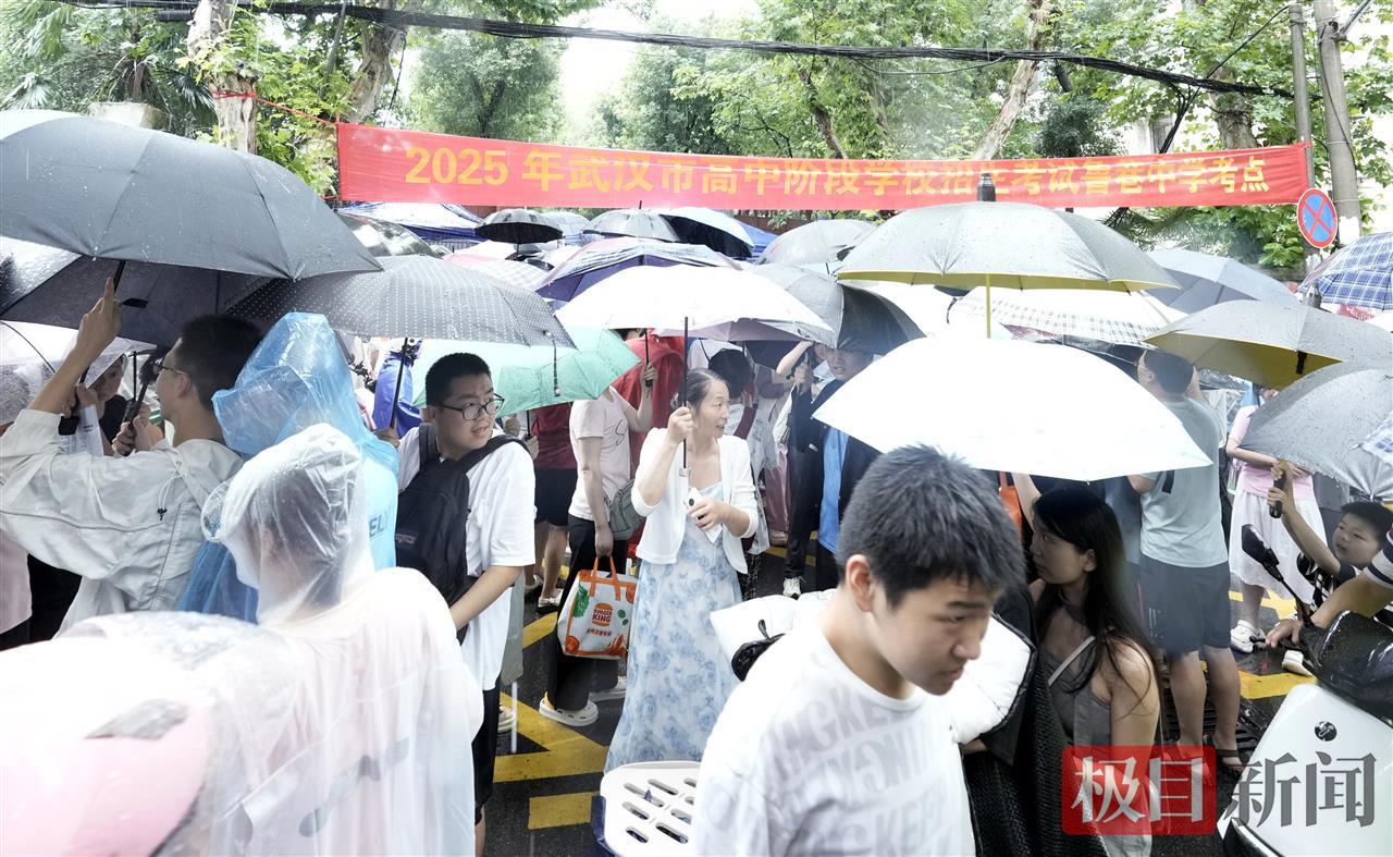 6月20日11时30分,武汉市2025年中考语文考试结束。武汉市鲁巷中学考点,考生在大雨中走出考场。