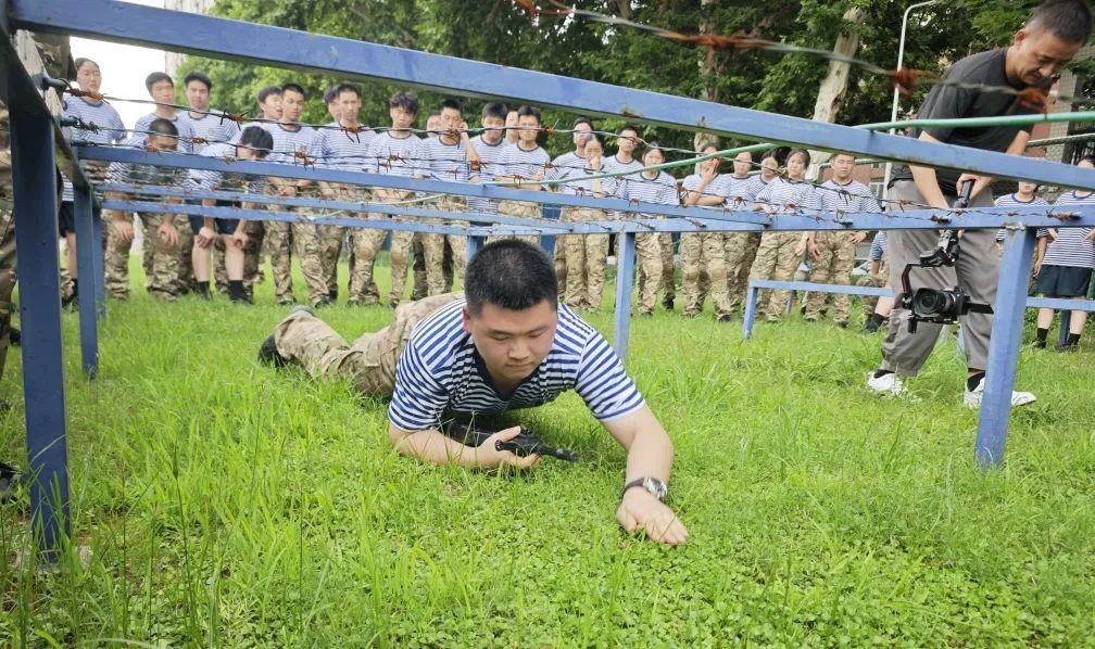 开营之初,学生们怀揣着对军营生活的憧憬踏入海工大,眼神中闪烁着好奇与期待。在随后的日子里,他们严格遵循军校一日生活制度,从清晨的出操到就寝前的晚点名,从松垮懒散到整齐划一,用汗水见证着成长。夏令营中,学生们经历了夜间奔袭、战术障碍训练、格斗训练、木兰湖橡皮艇大赛、模拟射击等多项硬核训练,锻炼了其体力、意志和团队协作能力。