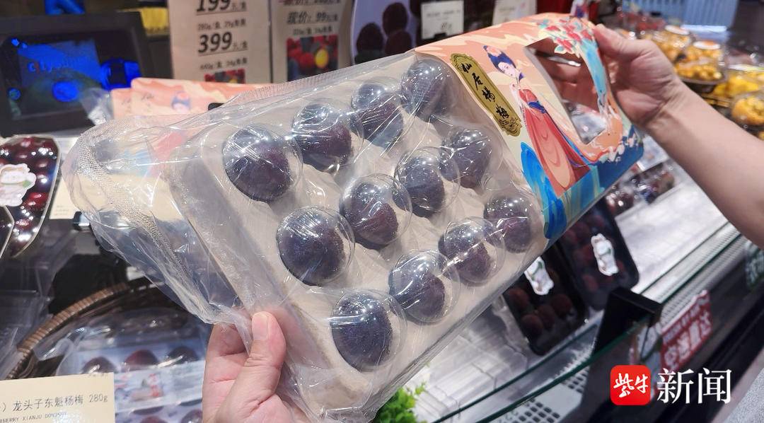 扬子晚报/紫牛新闻记者在南京河西一家综合体商超水果柜台看到,天价杨梅产地来自浙江台州仙居,营业员介绍道,该品种属顶级东魁品种,每一颗都经过精挑细选,重量需达34克,且成熟度、色泽、果形近乎完美。为锁住转瞬即逝的鲜度,采摘均在凌晨进行,随即全程冷链运输,并采用独立水晶盒与冰袋精心包装。仙居杨梅作为国家地理标志产品,其东魁品种的优质果品本就稀缺,叠加高昂的人工采摘、顶级包装和极速物流成本,共同造就了这令人咋舌的“天价”。