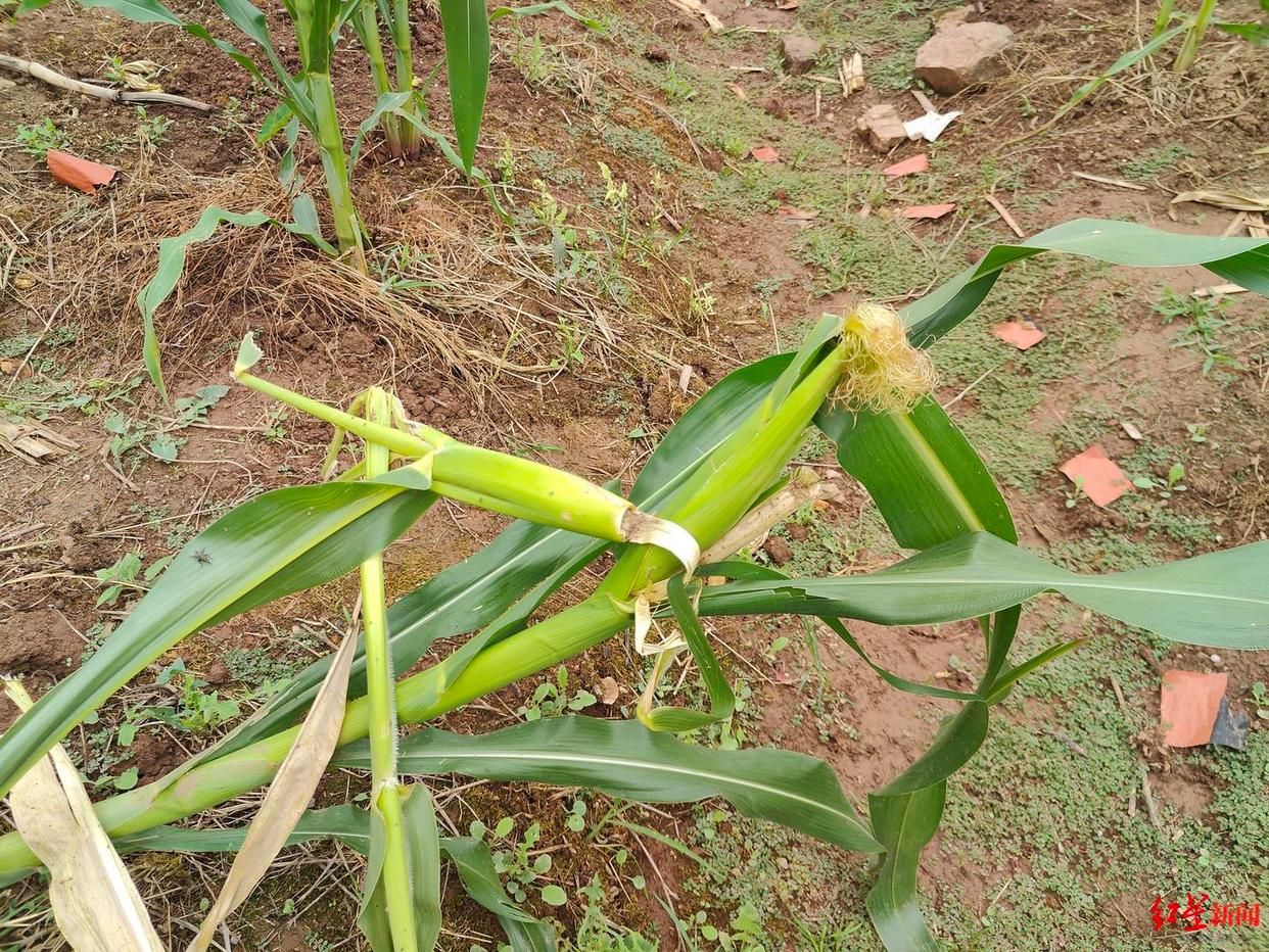 除了桃子,当地的枇杷、玉米、红薯也是猴子光顾的对象。记者注意到,紧邻桃林的玉米地里,玉米刚长出红须,尚未成熟,玉米秆被拦腰折断。村民陈祥英告诉记者,这些都是被猴群折断的,“由于玉米还没成熟,猴群对玉米地的破坏才刚开始。等到玉米再成熟一点,猴群可能就会成片地偷食、破坏玉米。”