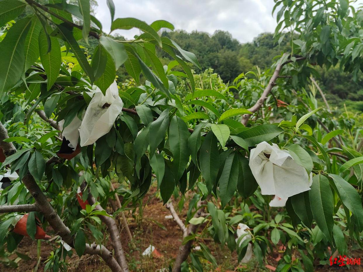 “这群猴子精得很,人一来它就跑,人一走它就回来,这段时间它们就住在周边的山上,专挑没人看管的时候偷吃玉米、桃子。”张昌友看着桃子掉落一地,有的被啃了几口,枝头上只留下了空袋子。