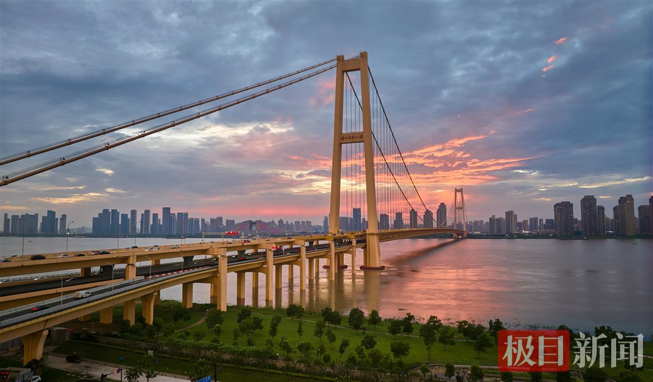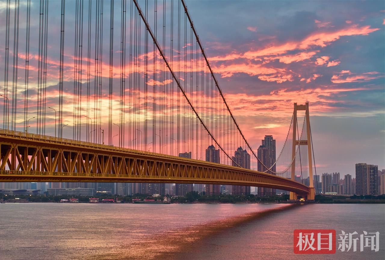 6月27日傍晚,江城武汉上空再现迷人晚霞。金灿灿的火烧云洒满长江江面,光芒四射,构成一幅“治愈系”的醉美画卷,吸引不少市民驻足拍摄,刷屏朋友圈。