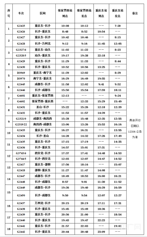 记者从广州局集团公司张家界车务段获悉,渝厦高铁黔常段将增加多趟往返成都、重庆双城经济圈与大湘西旅游圈的高铁列车。其中,张家界西站作为渝厦高铁与张吉怀高铁交汇站,自上午8时48分至夜间22时03分将增加18对往返大湘西至成都、重庆的高铁列车,自成都、重庆方向最早抵达张家界西站的是10时08分G2425次,最晚抵达的张家界西站是夜间21时57分G2441次,平均每40分钟到达一趟。