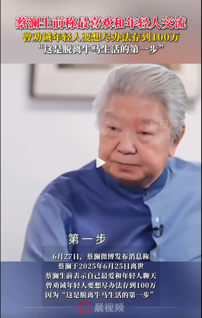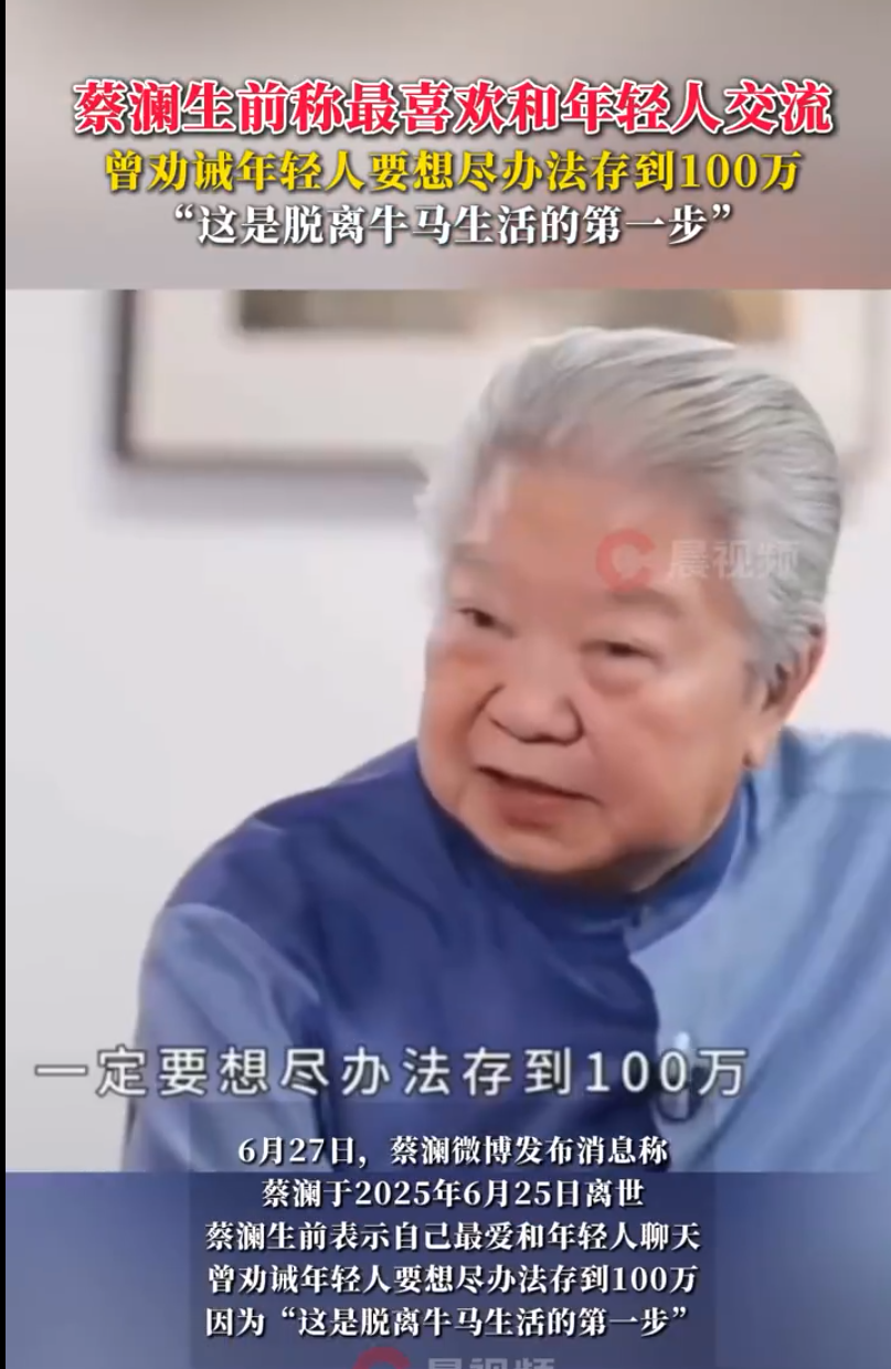蔡澜曾劝诫年轻人要努力存100万,这是脱离牛马第一步