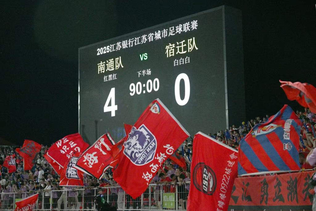 29日晚间,南通足球训练中心海门基地,苏超南通队主场4比0大胜宿迁队,豪取四连胜的同时成为唯一一支全胜球队。