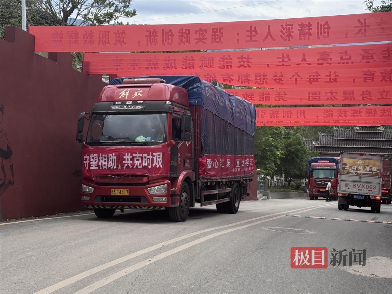 7月1日18时53分,仍有拉着“驰援榕江”横幅的物资捐赠车辆驶入校园。
