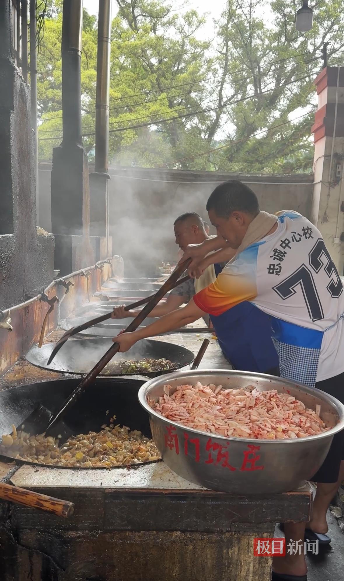 盒饭全部送走后,炒菜的大厨们也能得到短暂休息。来自陕西榆林大厨的边艳厅说,他最多一天炒了10锅,累得胳膊酸痛,擦汗的毛巾能拧出水,但他深刻感受到榕江人民的热情,晚上11点他想去超市买泡面填饱肚子,结果老板直接邀请他一同就餐,作为回报他买了西瓜送给老板。边艳厅说,他希望能在救援不那么紧张后,给救援人员做一锅陕北特色美食,回报这份热情。