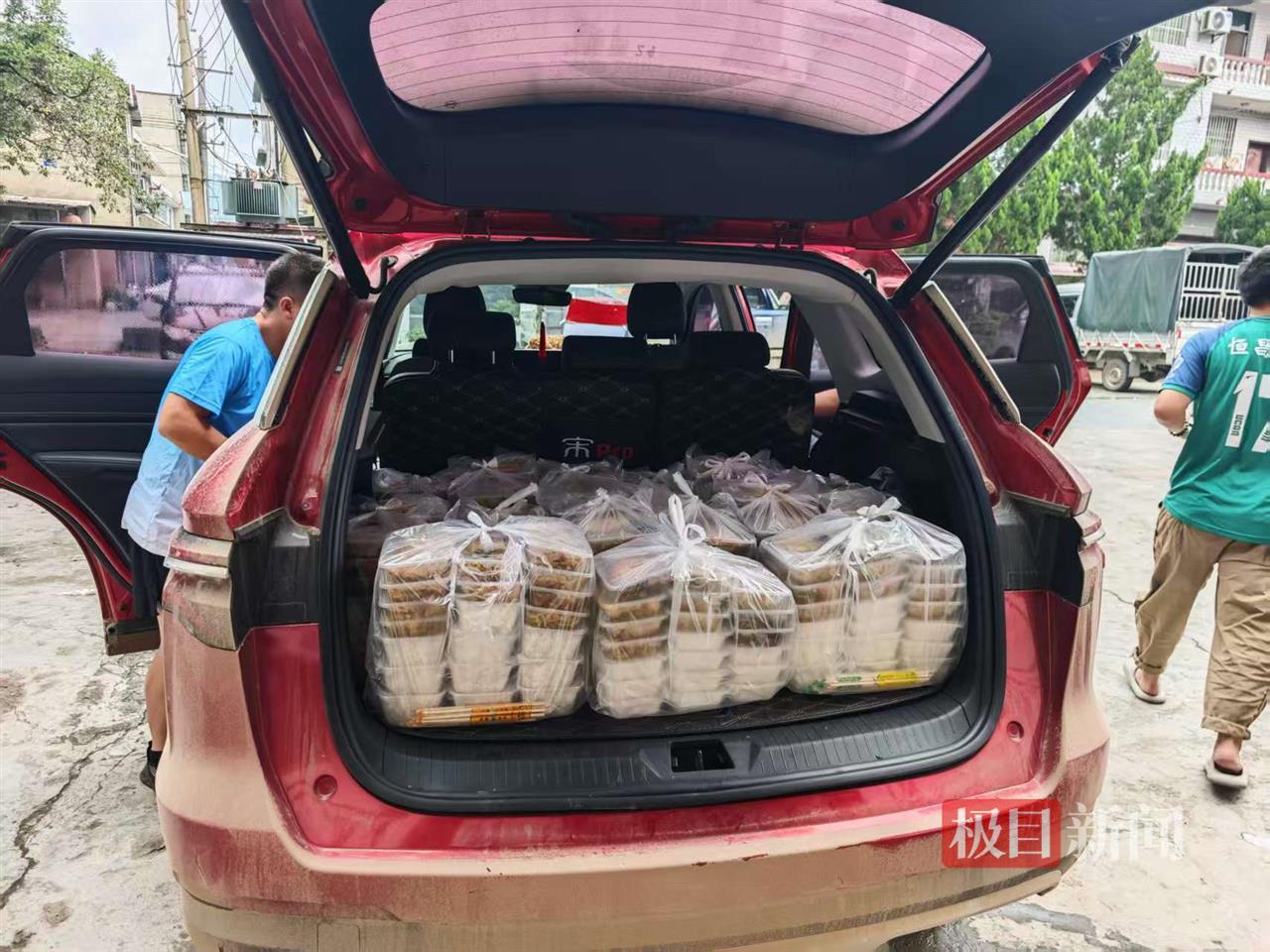 7月1日上午,记者随朱允政一同送饭,他驱车抵达忠诚镇王岭村时,志愿者们已早早备好盒饭。后备箱、后座都塞满饭盒,车内飘着饭菜的香味。仅20分钟,他便已将300份盒饭送到榕江县公安局。