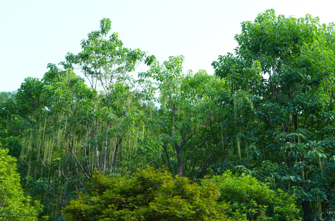 公园工作人员介绍,龟山公园楸树主要分布在索园两侧,每年4月会先开出淡紫色喇叭状花,花谢后才会结果。楸树作为紫葳科梓属植物,楸树的蒴果在发育过程中会形成细长革质的外壳,内部中空结构恰好与豆科植物的荚果外形相似,所以才会看起来形似“蔬菜”,这种“先花后果”的特性使其兼具观赏与生态价值。