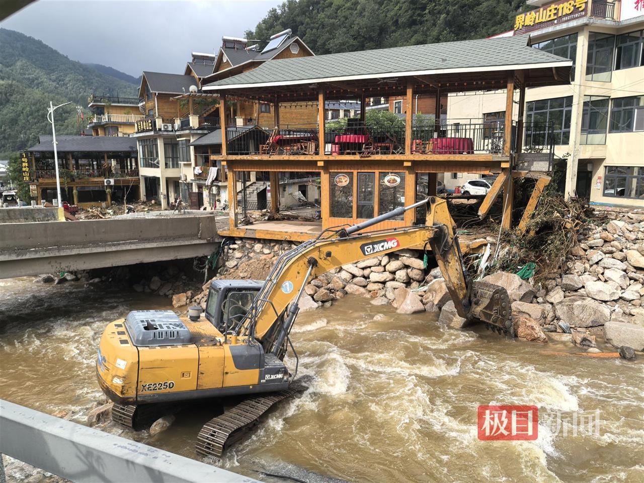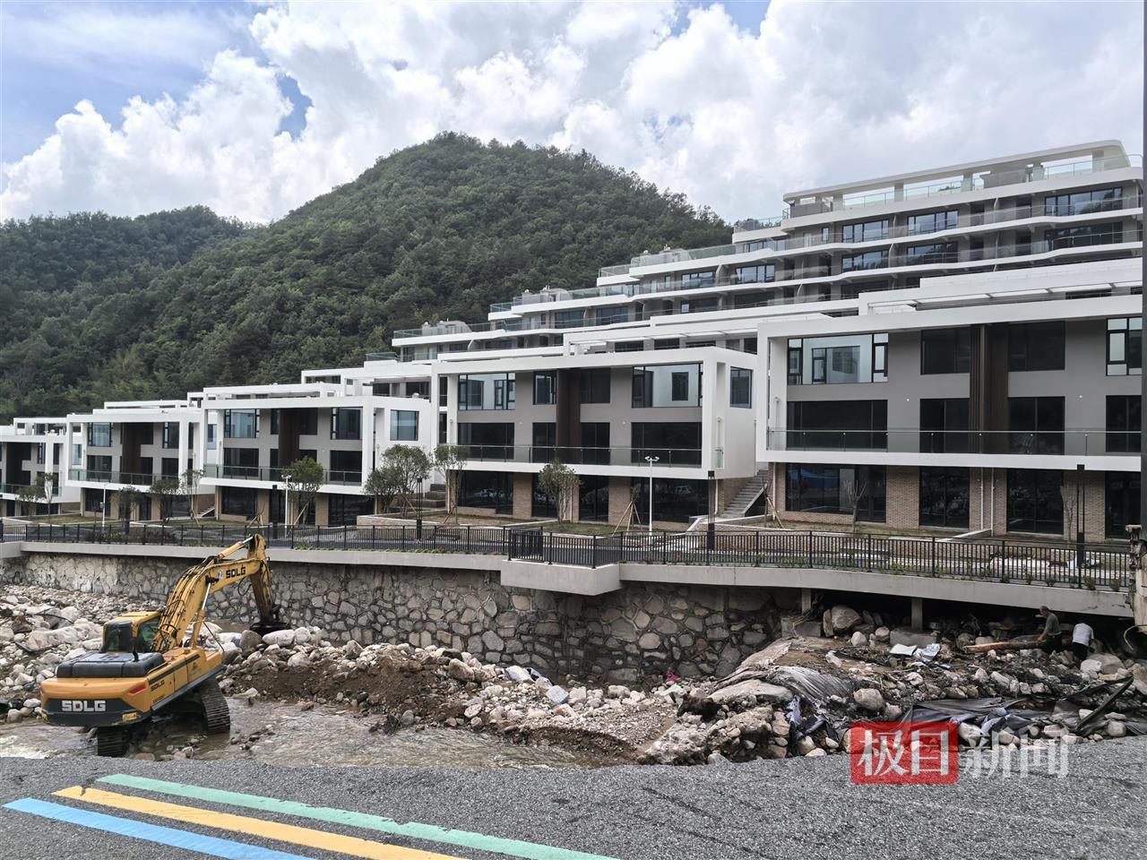 2日下午,在老界岭景区门口,温泉旅游度假村的数十栋房屋在蛇尾河岸边错落有致,这些去年刚建成的建筑在此次洪灾中未受太大影响。景区游客中心外,员工集结在一起,清理地面的淤泥。当天19时许,老界岭景区微信公众号发布消息称,洪灾发生后,景区道路中断,基础设施、游览设施损毁严重。目前,景区全力调集机械人员开展自救。景区将以更高标准完善基础设施、提升服务品质,争取早日开园。