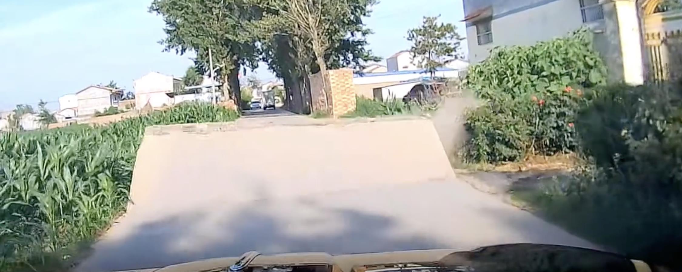 行车记录仪画面显示,7月4日下午5时许,车主驾驶的一辆黑色小车行驶在一段乡村小路上,右前方有一辆三轮车停靠在路边,其缓慢行驶通过。而当会车结束,黑色小车继续前行2秒后,前方的水泥路突然爆裂拱起,并扬起一阵尘土,车主急忙刹车,所幸未撞上。上述车主在评论区回复称,漆面完好无损,只有前挡下面有点石屑。还有网友称,小车幸亏遇到了农用车,减速会车,不然车辆受损会更严重。