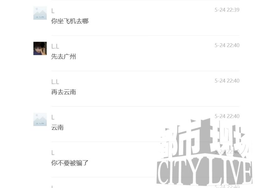 金卢杰电话关机,行踪成谜后,5月28日,心急如焚的金先生和家人决定前往云南西双版纳寻人,在出发前,金先生说他们到了儿子出发地浙江绍兴市公安局柯桥区分局齐贤派出所报案,他说警方通过查询儿子行踪轨迹,发现他在5月24号晚上从杭州飞往广州后,在当天凌晨从广州转机去了云南西双版纳嘎洒机场,25号晚上入住在机场附近的希曼智慧酒店。