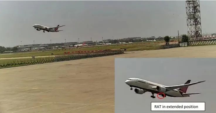 报告说,从机场监控视频可以看到,飞机应急能源冲压空气涡轮在客机起飞后立即开始工作,表明客机失去动力。飞行路径附近未观察到明显的鸟类活动,客机飞过机场围墙前即开始下降。