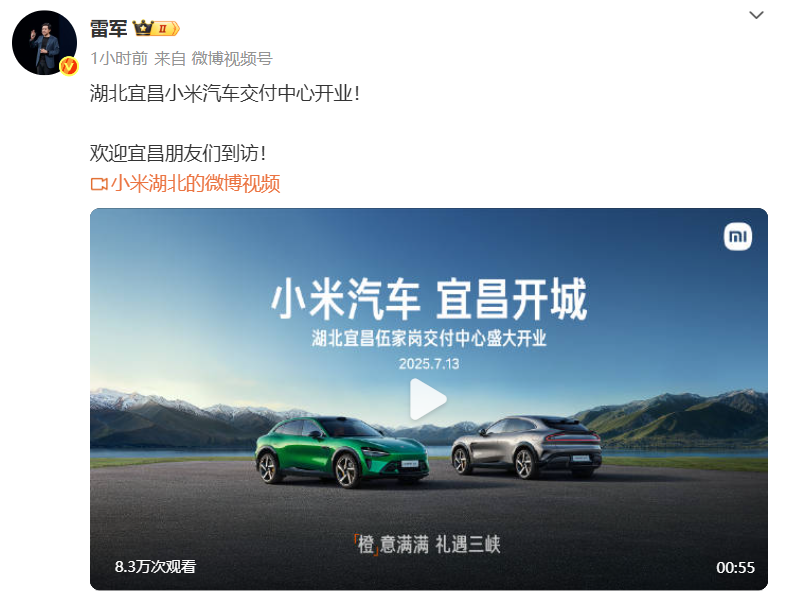雷军官宣:湖北宜昌小米汽车交付中心开业