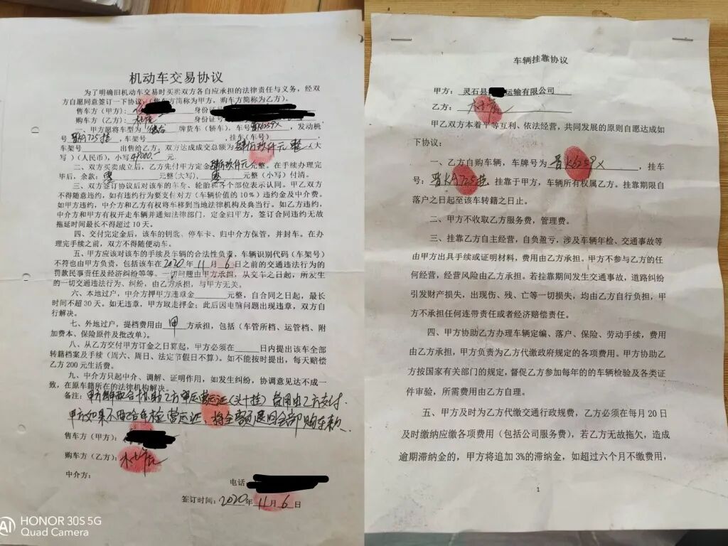 杜虎介绍,购车后,他将8辆牵引车过户到李某的商贸公司和运输代理部名下,用于抵押。而晋K6259X(晋KA725挂)及晋M85754则挂靠在山西的运输公司名下。此后双方发生纠纷,诉至法院。