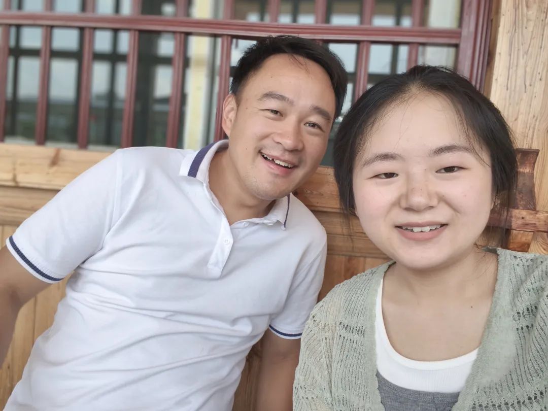 ▲田艳青与高中政治老师宫秀一起查高考分数