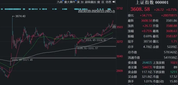 对于A股后市行情,财信证券认为,8月份之前,A股市场正处于新一轮做多窗口期,叠加投资者情绪改善、增量资金入场等利好催化,指数仍有上行动能,预计仍以震荡偏强运行为主。在市场宽基指数并未明显破位时,可保持较高权益市场仓位,顺势而为。虽然宏观经济及政策未见明显拐点,但“反内卷”政策如落实到位,将缓解“增收不增利”的困境,指数仍可能进入新一轮戴维斯双击阶段、并向上走出震荡调整区间。