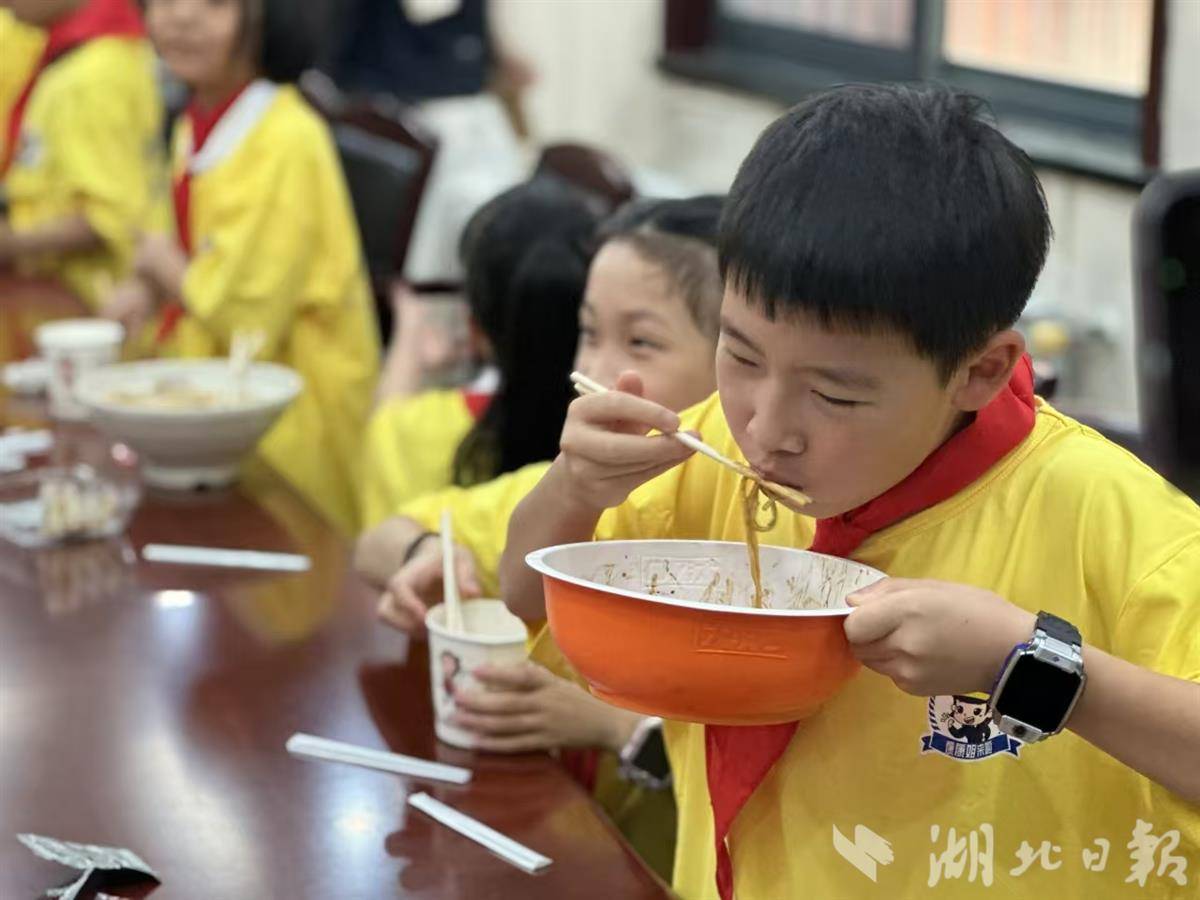 湖北日报讯(记者杨文漪、通讯员罗勇)热干面是武汉最具代表性的小吃之一,一碗色香味俱全的热干面是怎么做出来的?进入市场售卖需要经过哪些严格的程序?7月22日,武汉市市场监督管理局主办的“红色主旋律 先锋‘康康姐’——武汉市市场监督管理局2025年文明实践暑期科普亲子游”第四场走进武汉大汉口食品有限公司(以下简称大汉口食品),小朋友们在车间探访热干面“智慧”生产线,在“一碗面”里探寻武汉老字号的魅力。