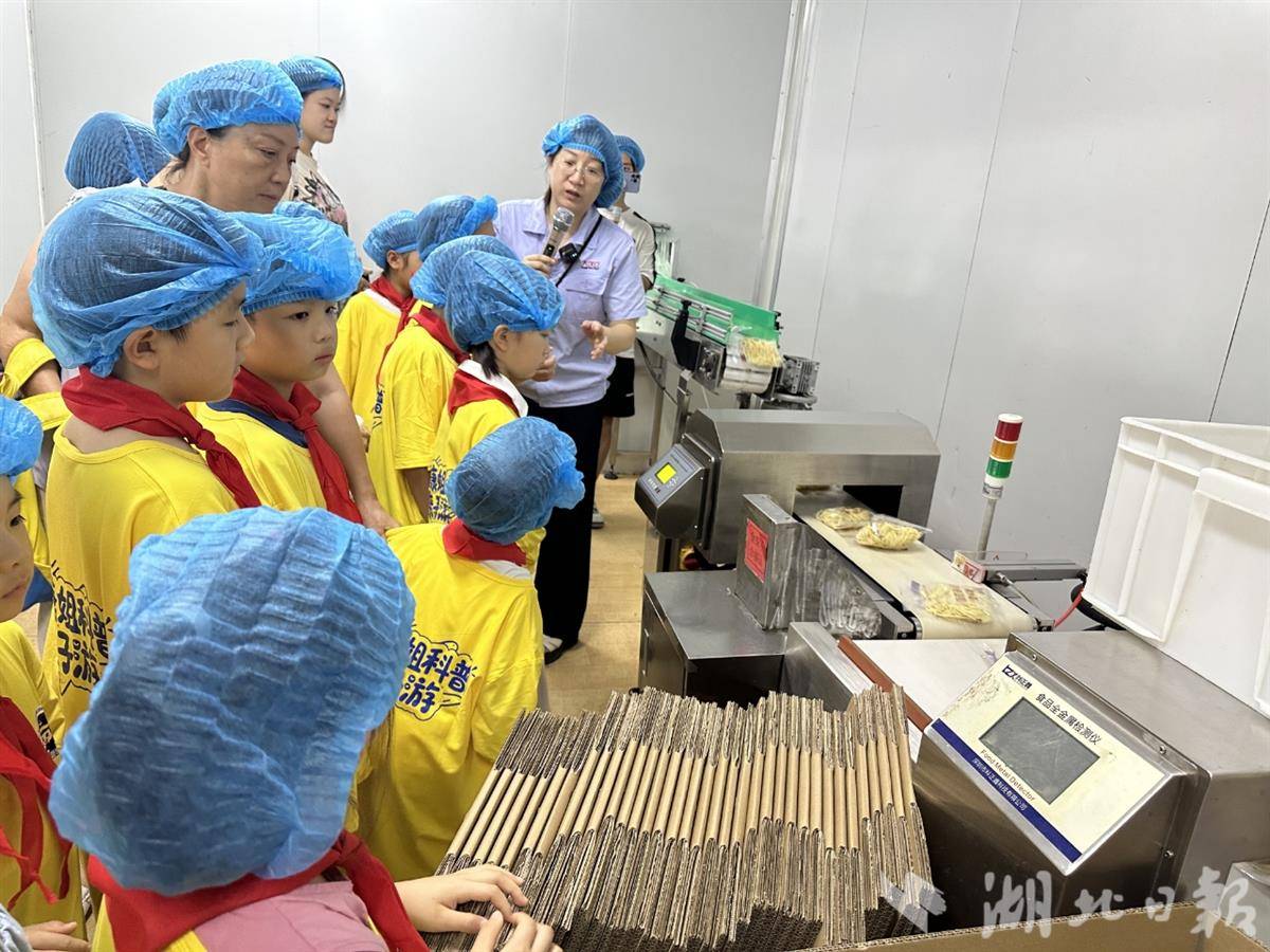 在包装车间,小朋友们又见证了一袋袋包装完整的热干面被整齐放入打包箱,送上传输带,通过流通环节,让更多消费者品尝到武汉特色美食。