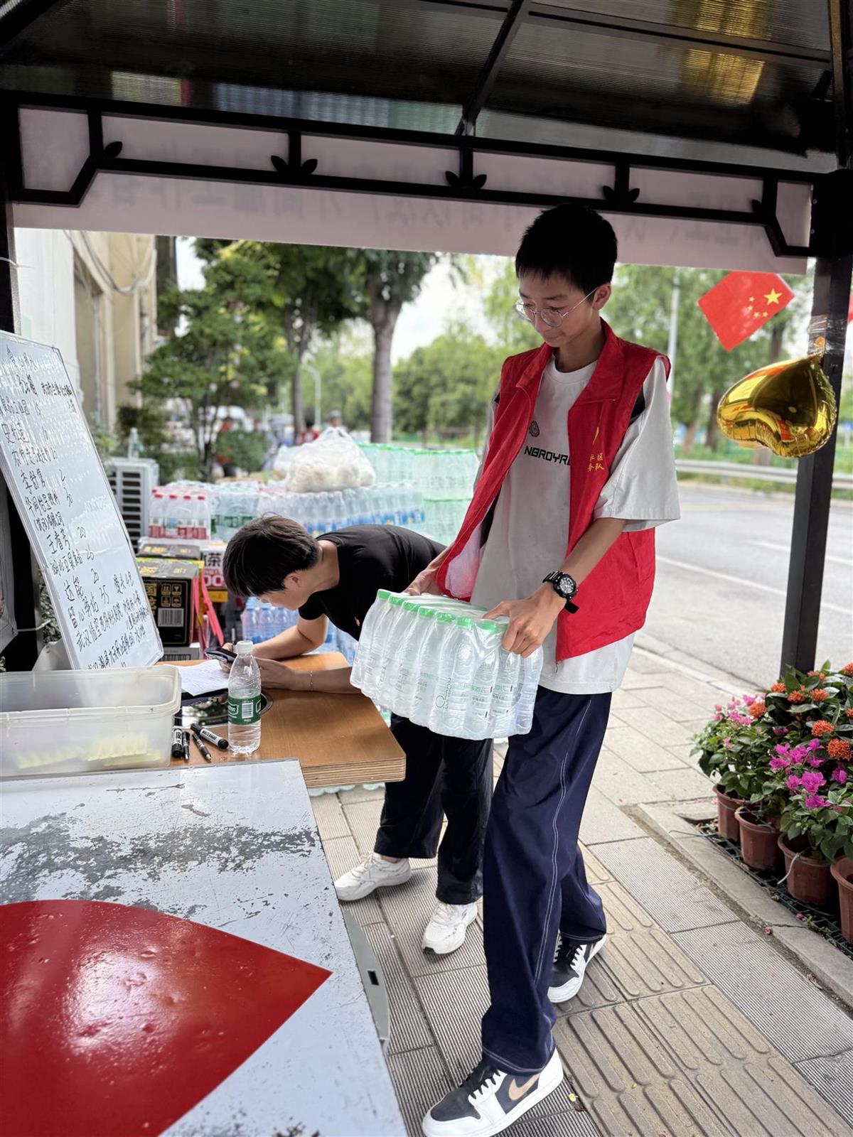 在忙碌的志愿者中,14岁、身高1.9米的李舒隽格外显眼。这位吴家山第三中学的准初二学生,当天在妈妈陈女士的带领下参与进来。陈女士特意购买了两箱矿泉水捐赠,她表示看到社区号召后,就想带着孩子一起做志愿服务,尽一份心意。于是,李舒隽不仅参与了捐赠,更在现场当起了志愿者,帮忙维护秩序。这份跨越年龄的爱心,在炎炎夏日里,显得格外清澈动人。