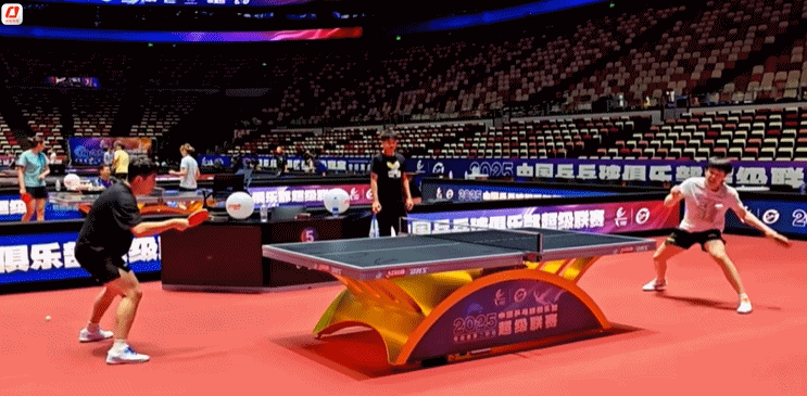 第一阶段,王楚钦领衔的山东魏桥俱乐部六战全胜,领跑男团积分榜。昨天的训练中,王楚钦和梁靖崑主要进行了中远台的攻防训练以适应场地空间感。