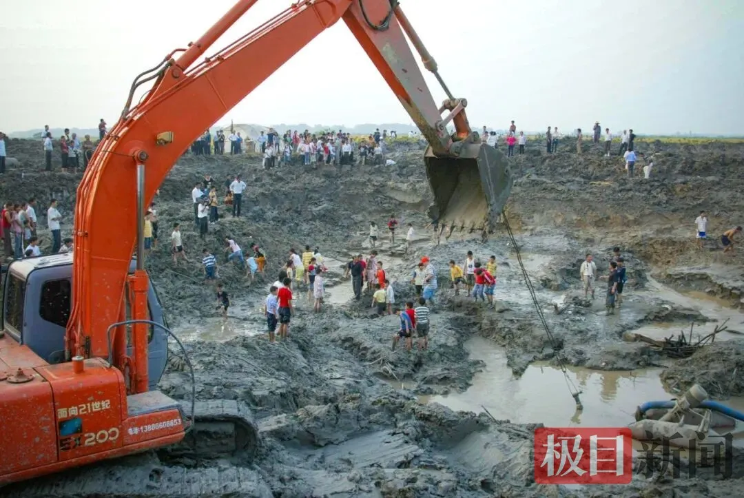 我们提前三四天到现场,正赶上下大雨。村里通往鱼塘的路全是泥巴,足有三里地,我们背着沉重的设备深一脚浅一脚地走,到地方时浑身都沾满了泥。挖泥船和大挖机正在塘里作业,战机还没露出水面。