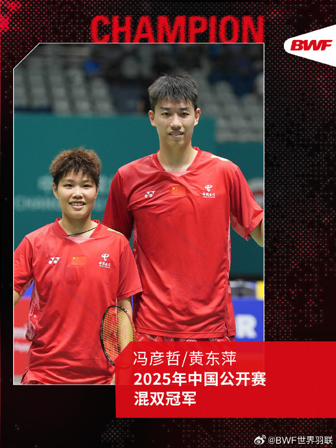 恭喜冯彦哲/黄东萍夺得2025年中国公开赛混双冠军