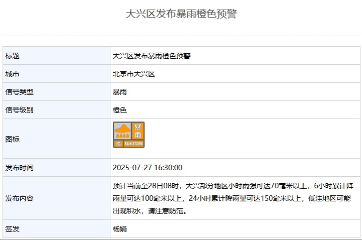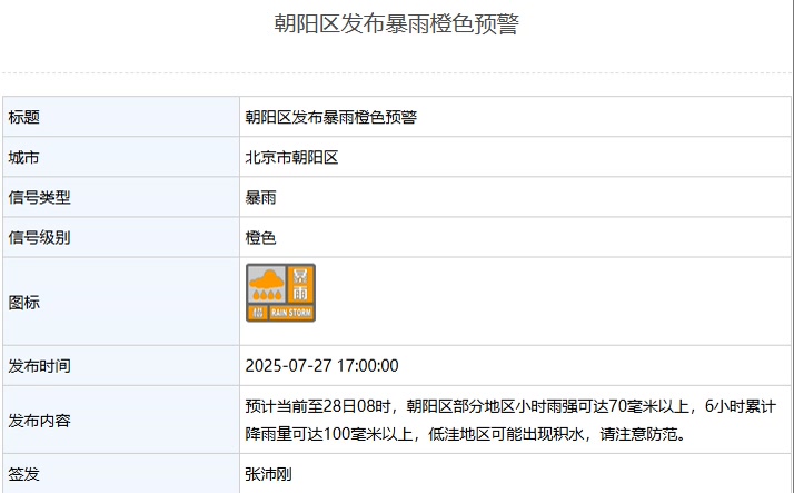 注意!北京1区发布暴雨红色预警、5区橙色预警