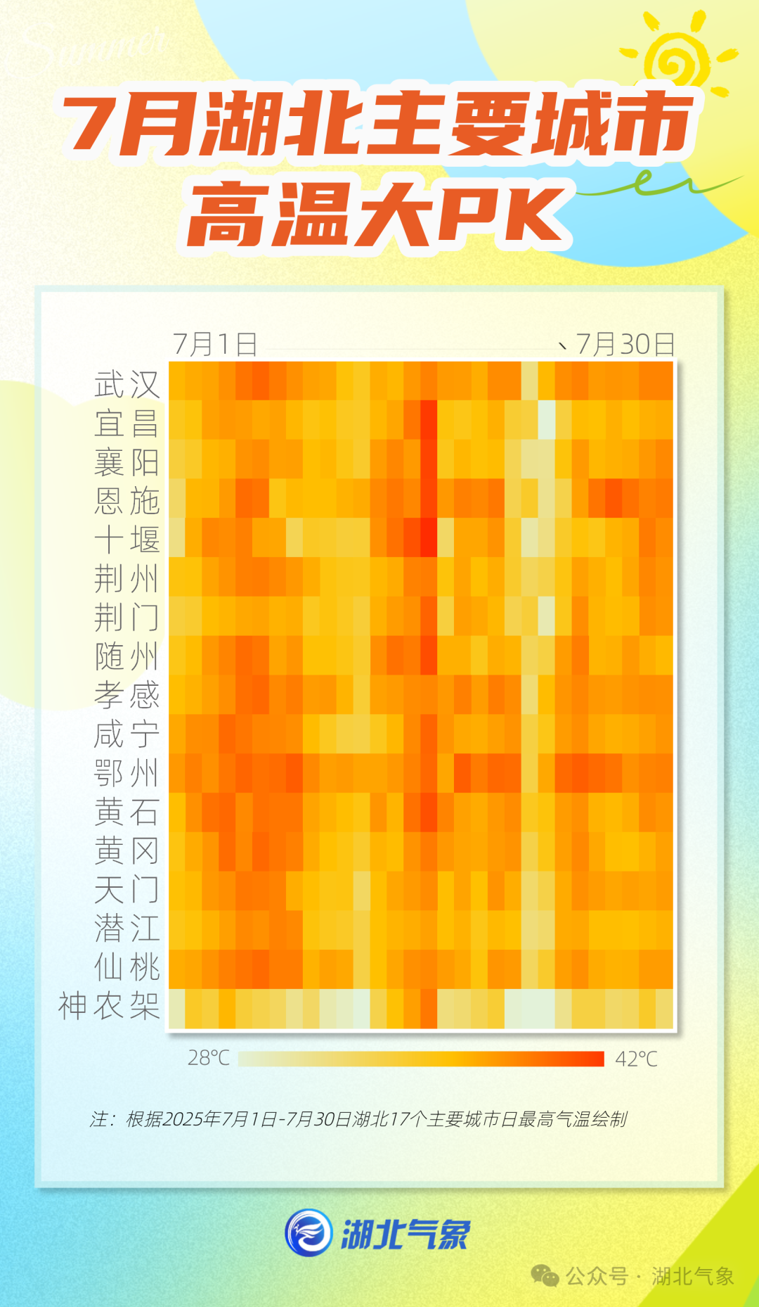 持续笼罩荆楚大地的“史上最热7月”,终于要和我们说再见了!回首这整整31天,骄阳似火、热浪滚滚,湖北大地仿佛开启了“烧烤模式”,每一个湖北人都是这场高温的亲历者和见证者。