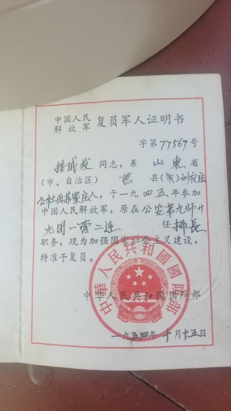 接成法复员证(图源:受访者提供)