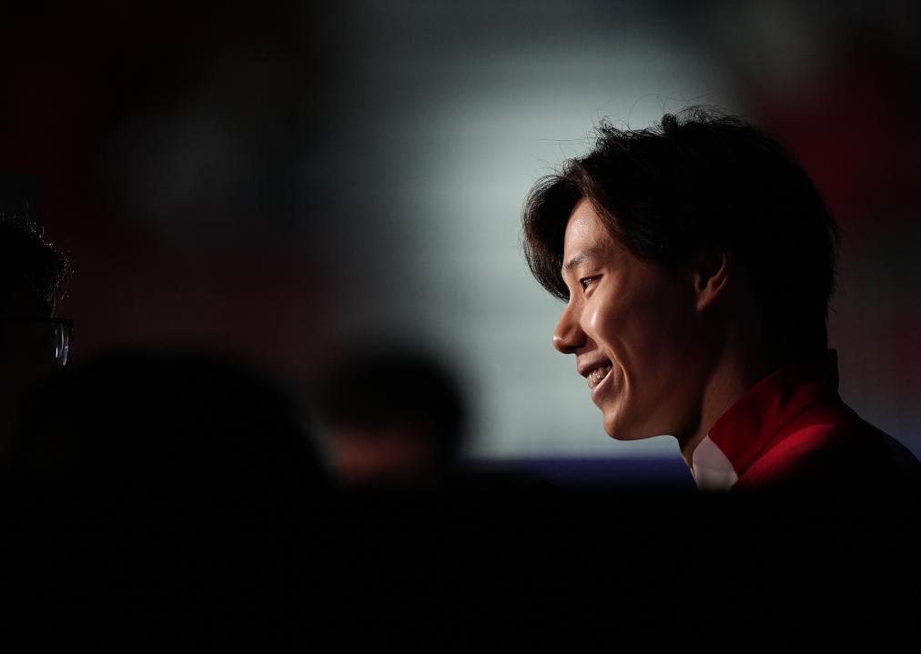 8月1日,中国选手覃海洋在颁奖仪式后接受采访。新华社记者 夏一方 摄