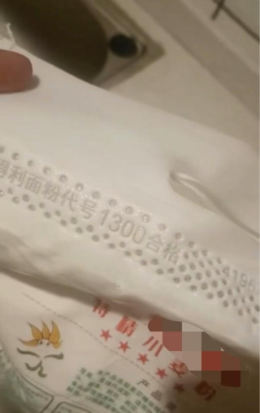 郑先生拍摄了现场视频,面粉包装袋上显示是山东菏泽一厂家生产的12.5kg重特精小麦粉,标注的生产代码是1300。