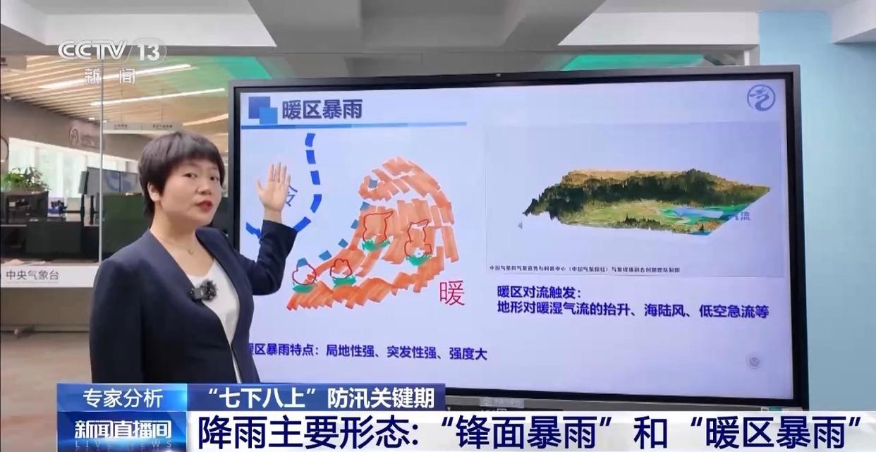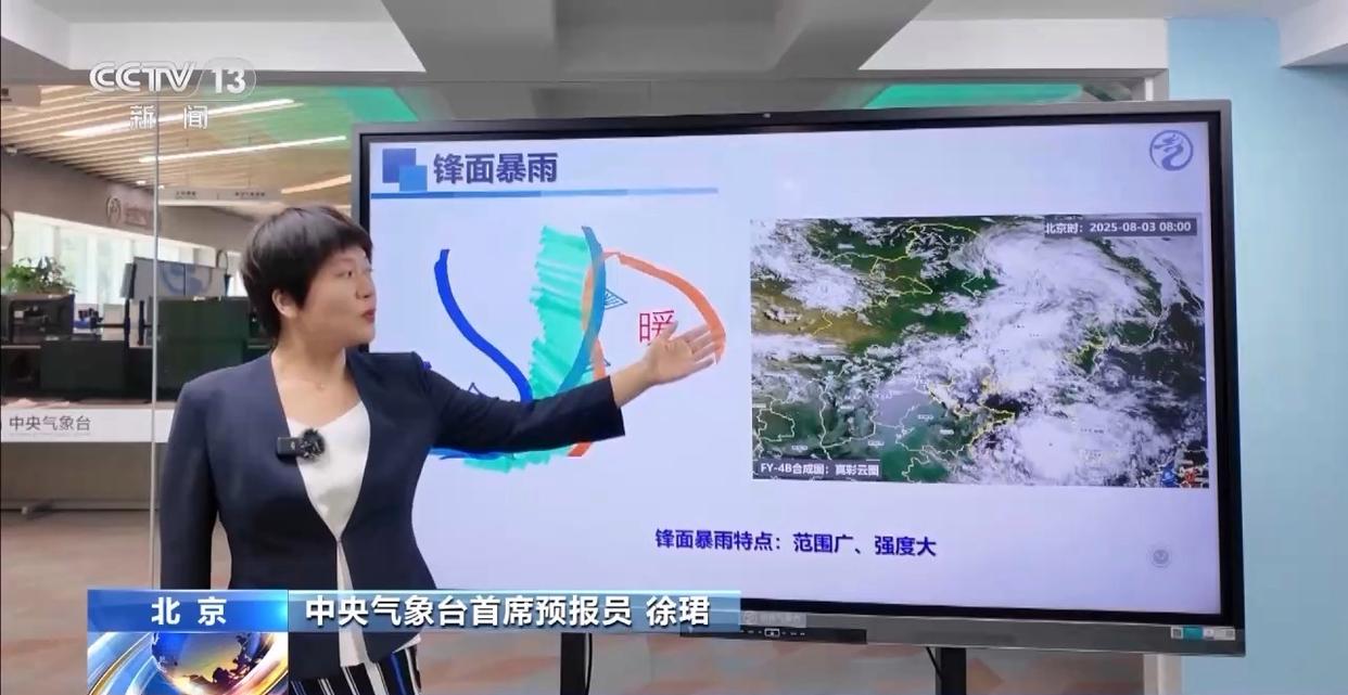 中央气象台首席预报员 徐珺:“七下八上”的降雨,主要可呈现两种不同的形态。夏季风为北方地区带来充沛的水汽,当伴随大范围明显冷空气作用时,冷暖对峙较为激烈,这些水汽将以大范围降雨的形式被消耗,通常称为“锋面暴雨”。
