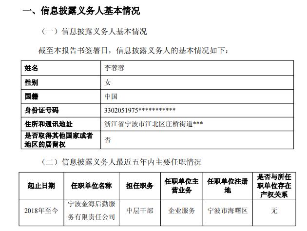 对于资金来源,李蓉蓉表示,本次受让上市公司股份所使用的资金来源于自有资金或自筹资金,不存在资金直接或间接来源于上市公司及其关联方资金用于本次认购的情形,亦不存在通过与上市公司进行资产置换或者其他交易获取资金的情形。根据天眼查,宁波金海后勤服务有限责任公司唯一股东为宁波海关后勤管理中心。