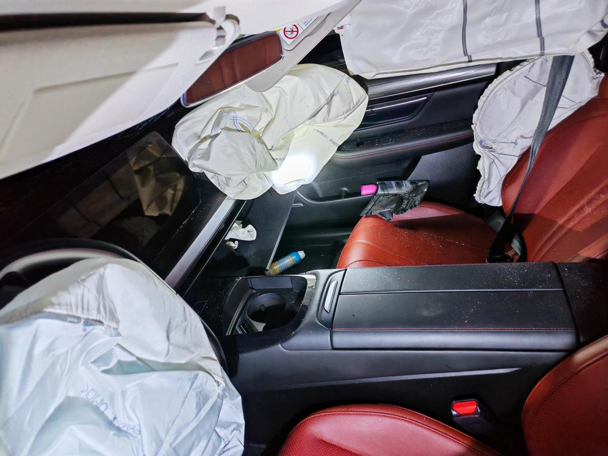 ▲发生碰撞后车内气囊全部弹出。受访者供图