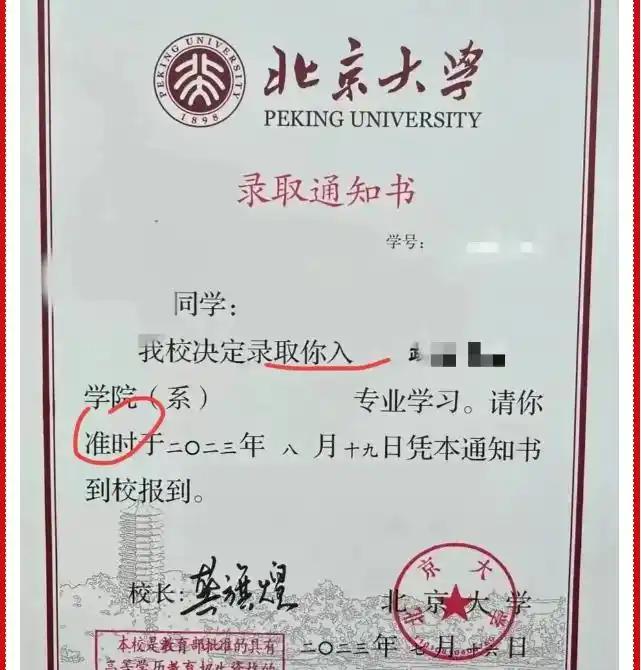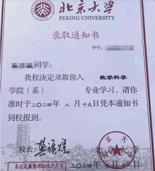 △网友晒出的2025年北京大学录取通知书。图源网络